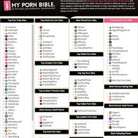 Mypornbible.com is a short porn list site that gives fappers and webmasters a quick peek at the top-performing sites across many fetishes...
